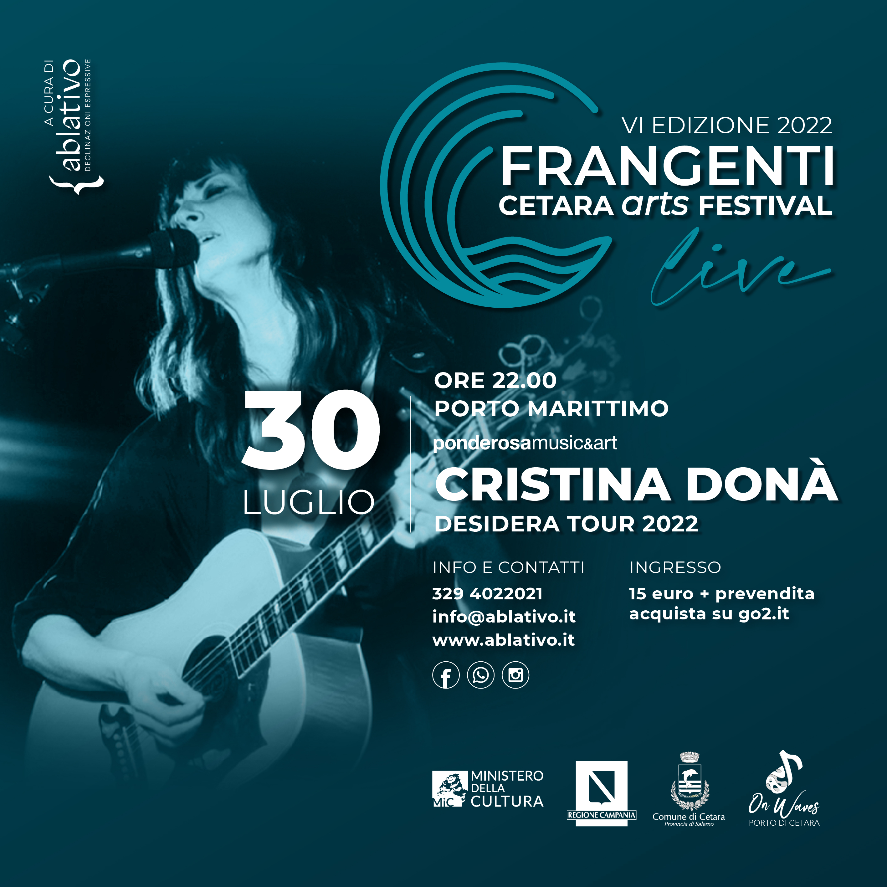Attive le vendite per CRISTINA DONA' 30/07/2022 H.22:00 Porto Marittimo - Cetara (SA)